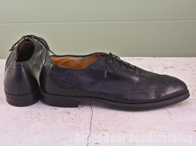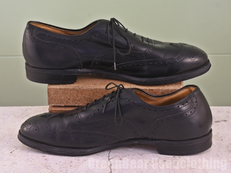 X848◆USA製【Johnston&Murphy】ビンテージ ウィングチップシューズ 良い味 黒 ブラック メンズ 10.5E 28.5cm