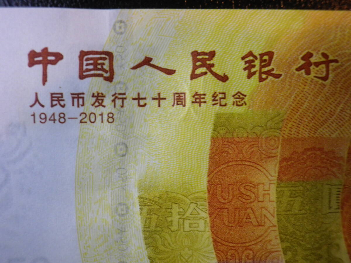中国人民銀行 2018年 70th 記念紙幣 50Yuan(元)未使用 p-911
