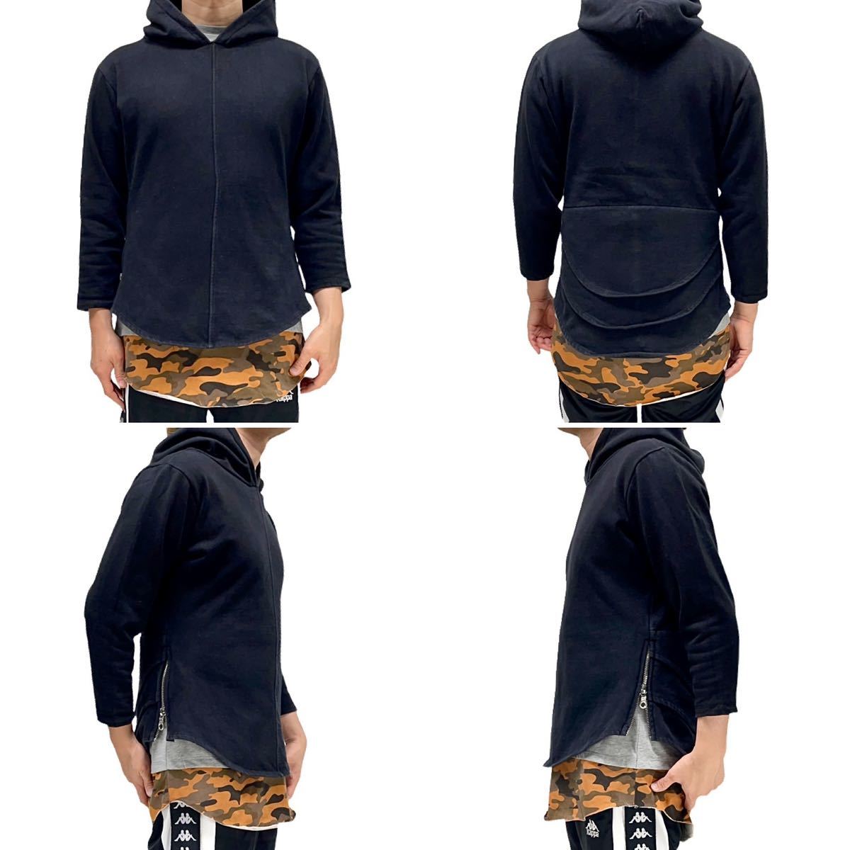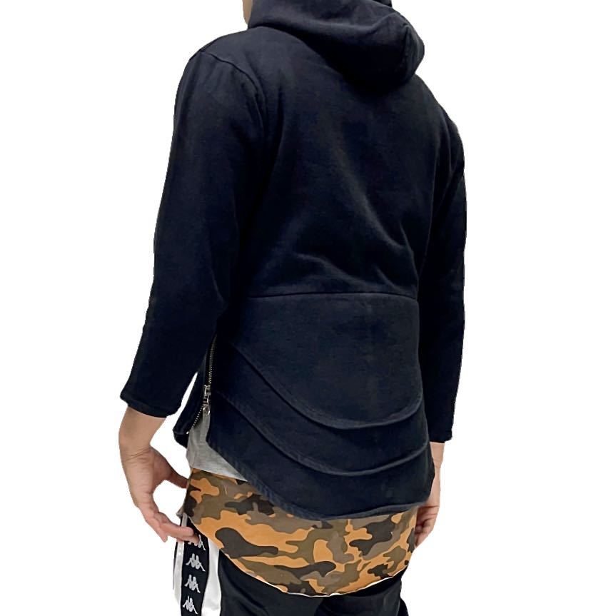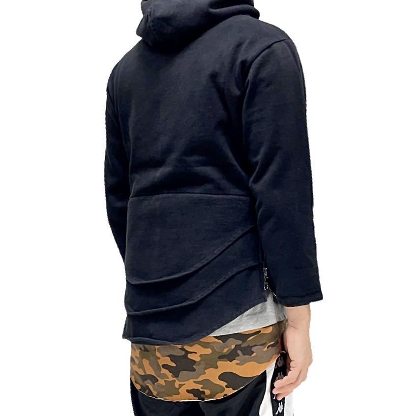 バックのラウンドヘムのレイヤードデザインが特徴のパーカー。