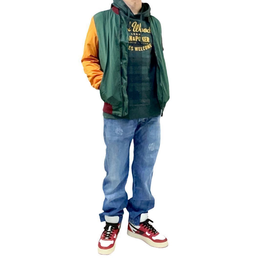 ウォッシュ加工で程よい着古し感と程よくフィット感のあるシルエットがビンテージ感を醸し出します。