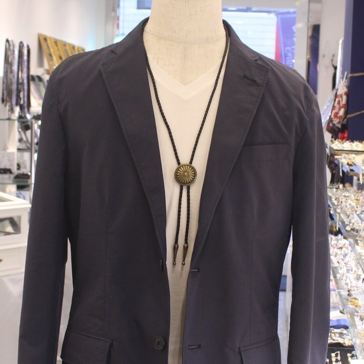 シャツのネクタイ代わりとして、またネックレスのようにしてご使用いただけるお洒落なループタイ。