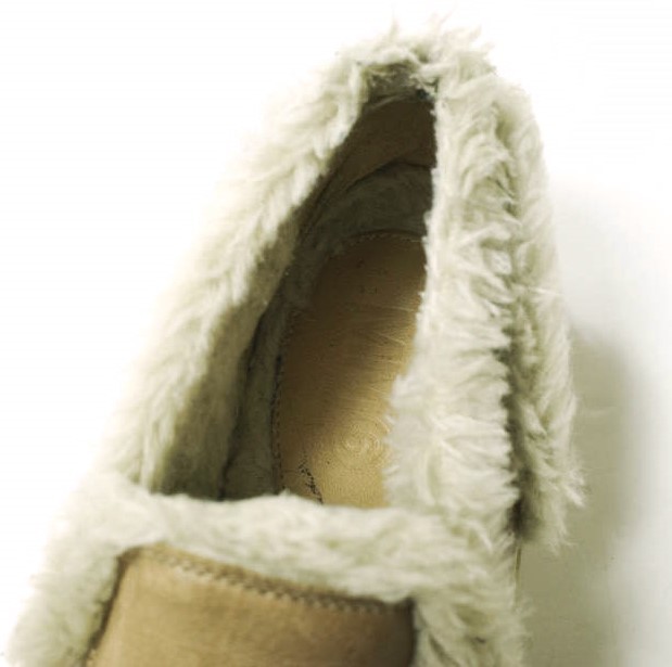 本作はインナーとアッパーにボアトリムデザインを採用したレザースリッポン。