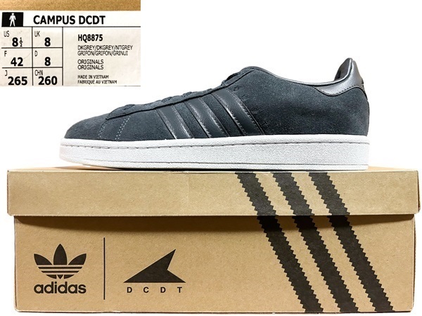 箱付き極美品、レア!ADIDASアディダス×DESCENDANTディセンダント CAMPUS DCDTキャンパス ダークグレー 2022年製 26.5cm US8.5ガゼルサンバ