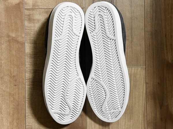 実寸はアウトソールが縦28.5cm、横最大幅9.6cmです。(素人採寸ですので誤差はご容赦ください)。