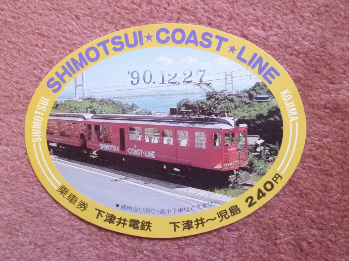[廃線直前]下津井電鉄乗車券1枚(廃止/廃線/廃車/平成3年1月1日廃止/メリーベル号/下電グループ/鷲羽山/下津井⇔茶屋町・児島)