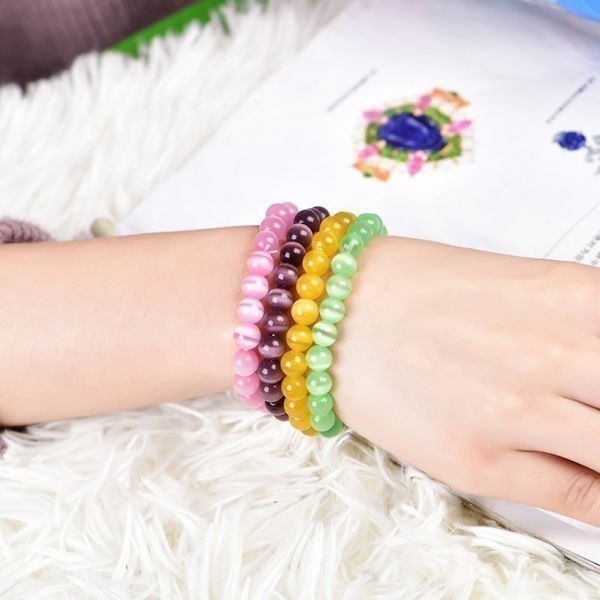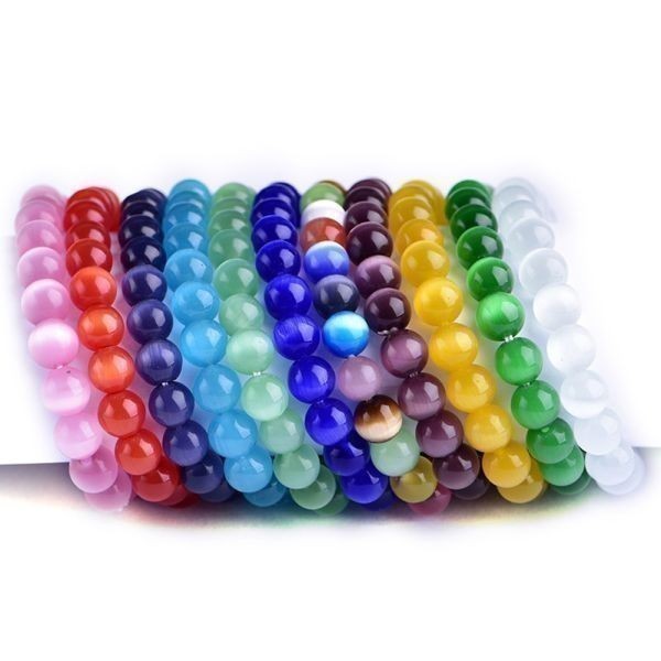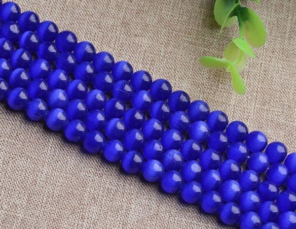 [EasternStar] 海外発送 ディープブルー キャッツアイ 猫目石 Cats eye 玉サイズ10mm 1連売り 長さ約40cm