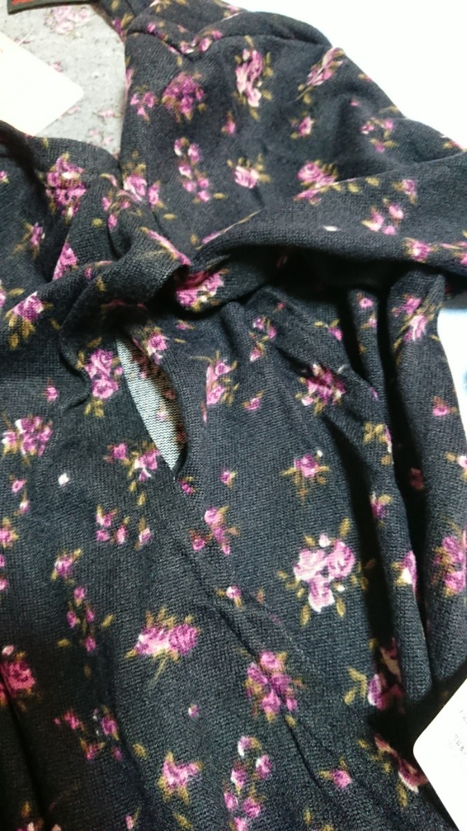 @♪425☆未使用・保管品☆授乳服☆ニットソー小花柄マキシワンピ 紺М125①