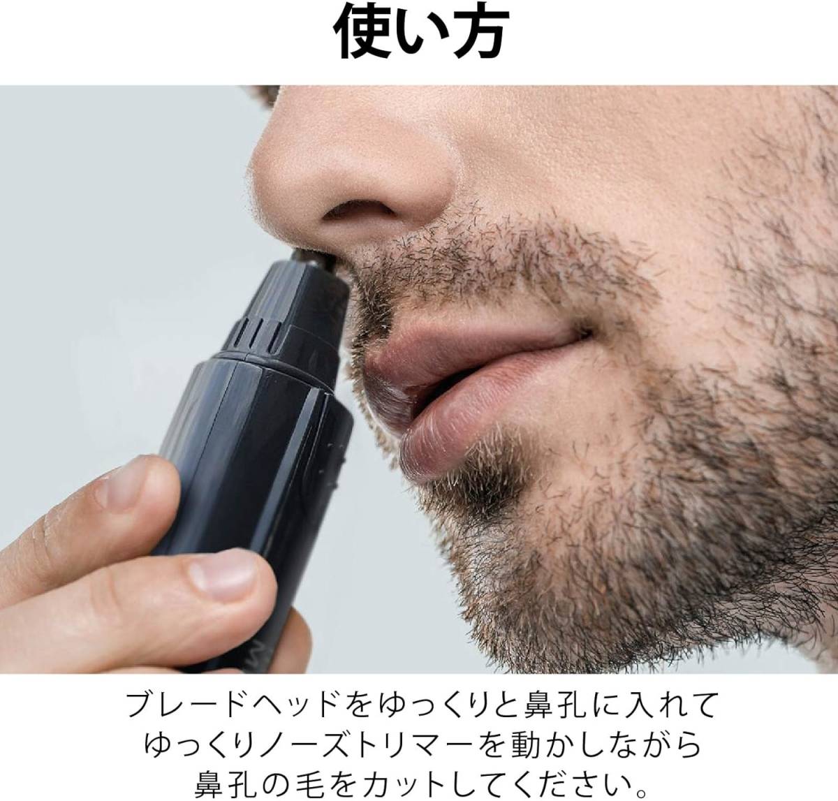 ブレードヘッドをゆっくりと鼻孔に入れてゆっくりノーズトリマーを動かしながら鼻孔の毛をカットしてください。