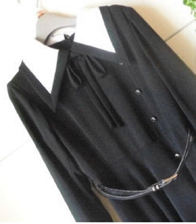お色は本体は黒無地です 襟の部分とスカート裾に白の配色 裏地付き ベルト付です