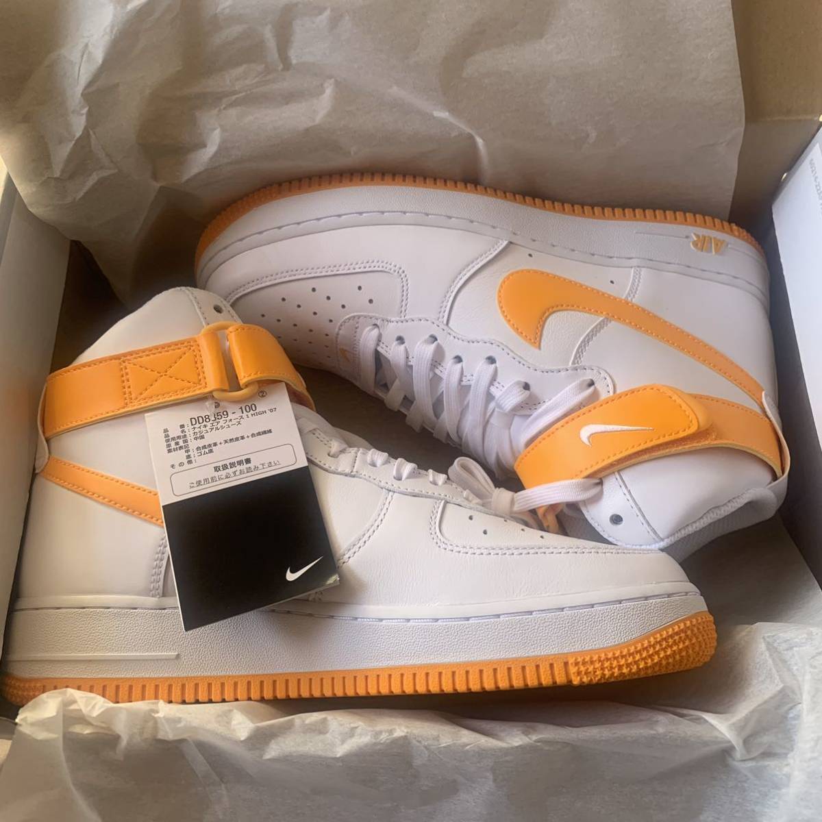 新品未使用のエアフォース1を出品します。ホワイトに濃いイエローのスウォッシュが映える綺麗なカラーリングが良い感じの商品となります。定価即決での出品となりますので、よろしくお願いします。