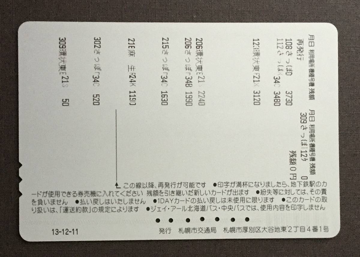 復刻版(平成6年発売デザイン)☆札幌市共通 ウイズユーカード (使用済み)です。