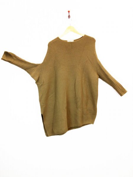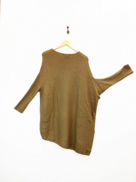 LU0630 ◇送料無料 古着 DouDou ドゥドゥ レディース ニット チュニック Fサイズ カーキ アシンメトリー ドロップショルダー 伸縮性