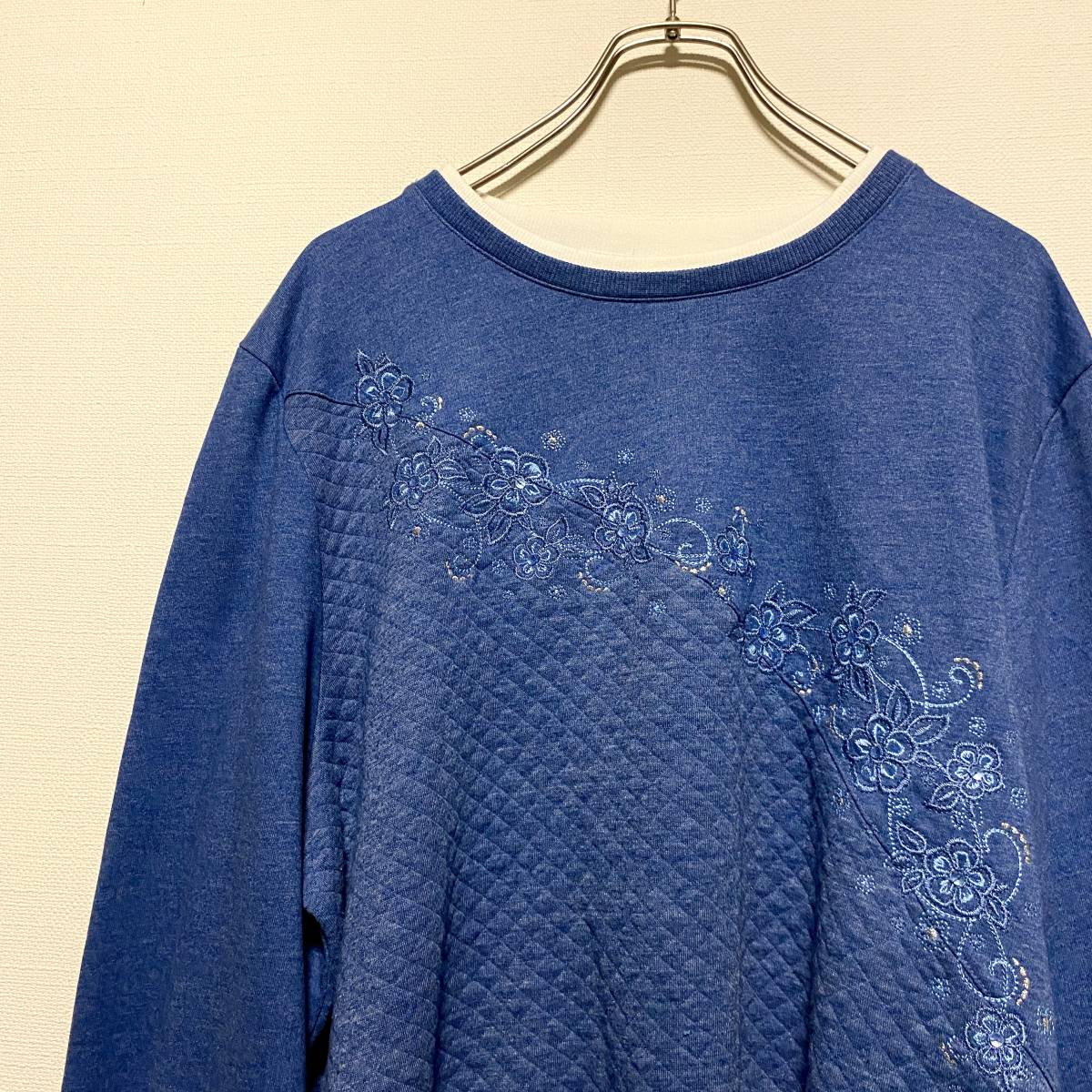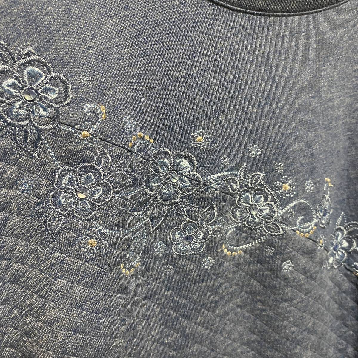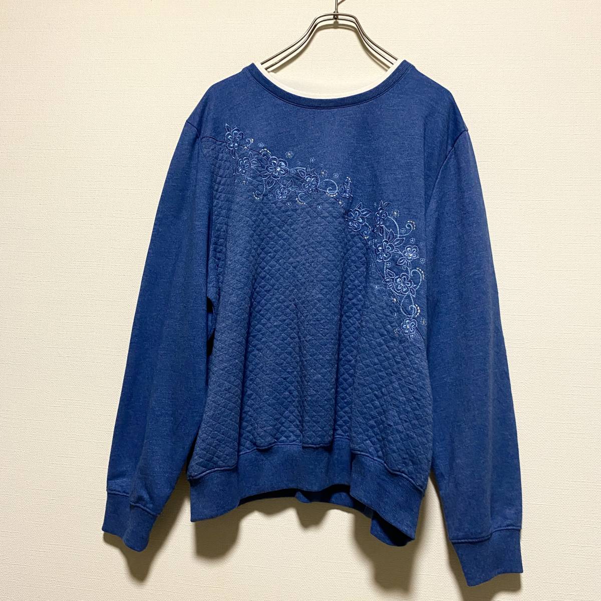 アメリカ古着 トレーナー スウェット レトロデザイン ヴィンテージ 刺繍 花柄 XLサイズ ビッグサイズ 【R89】