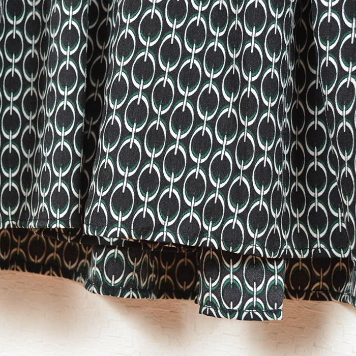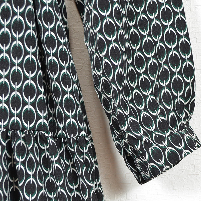 ・特徴的なチェーン柄ワンピース。