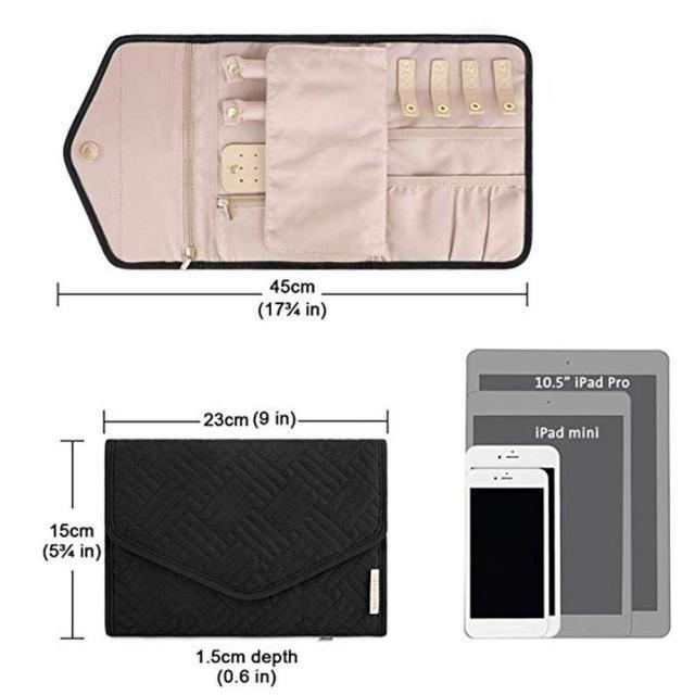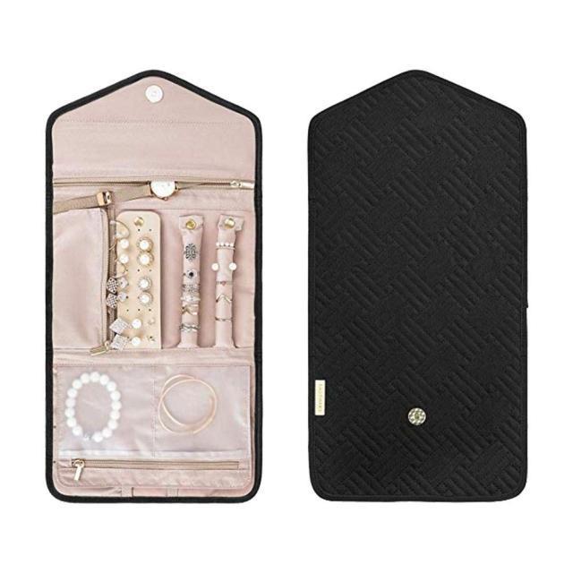 大容量ジュエリーケース【ブラック】旅行ジュエリーケース/携帯用アクセサリーケース/ピアスケース/リングケース/ネックレスケース