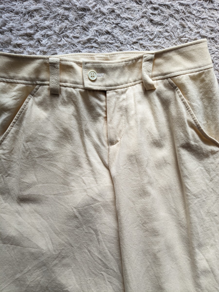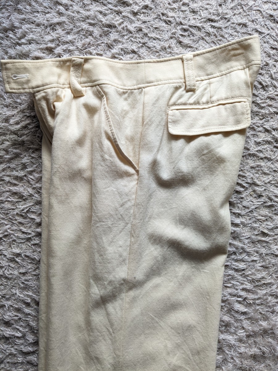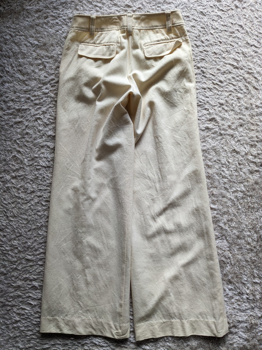 ELLE PLANETE 秋冬~ロングパンツ ワイド上品きれいめ 丈たっぷり オフホワイト シンプル無地 毛98% 総裏地付き size36 7号? 美品 イトキン