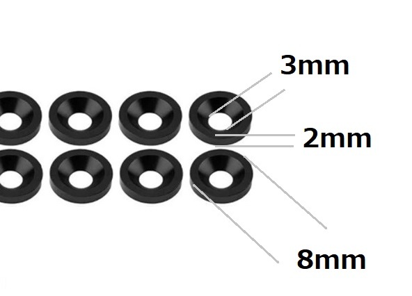 ☆アルミ カラーワッシャー ブラック M3皿ネジ用 8個1セット