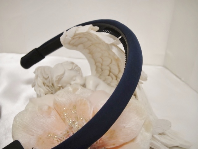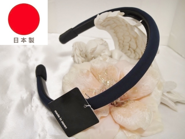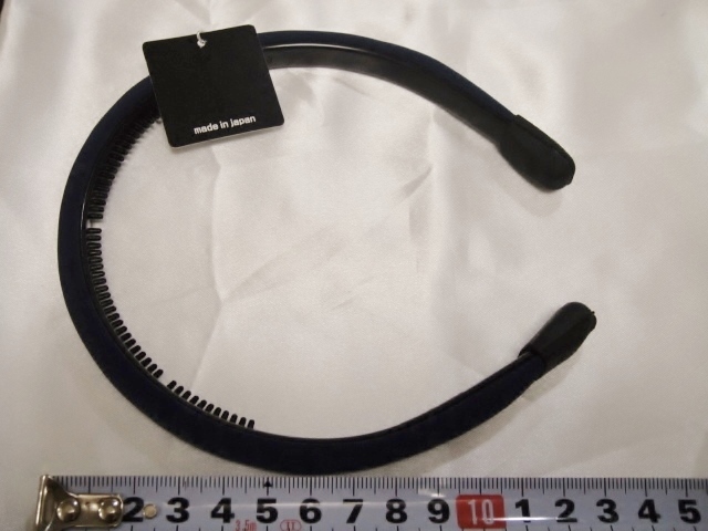 ♪ 新品 カチューシャ 日本製『高品質/頭が痛くならない/レーヨン/甲丸/ソフトクッション入り/細/ネイビー/紺』♪