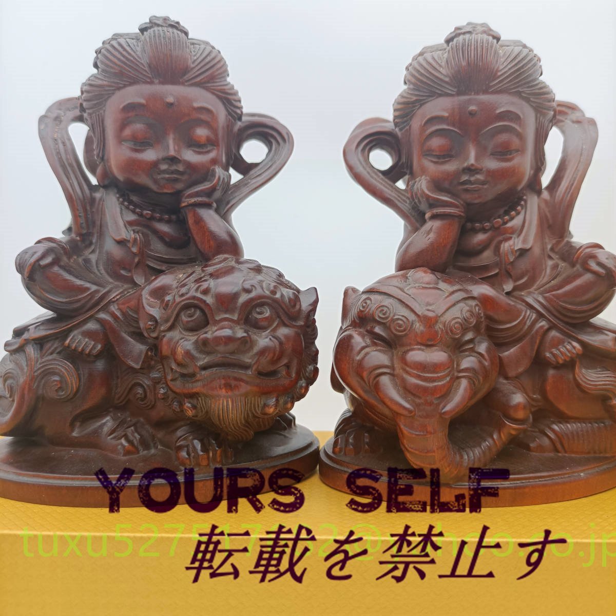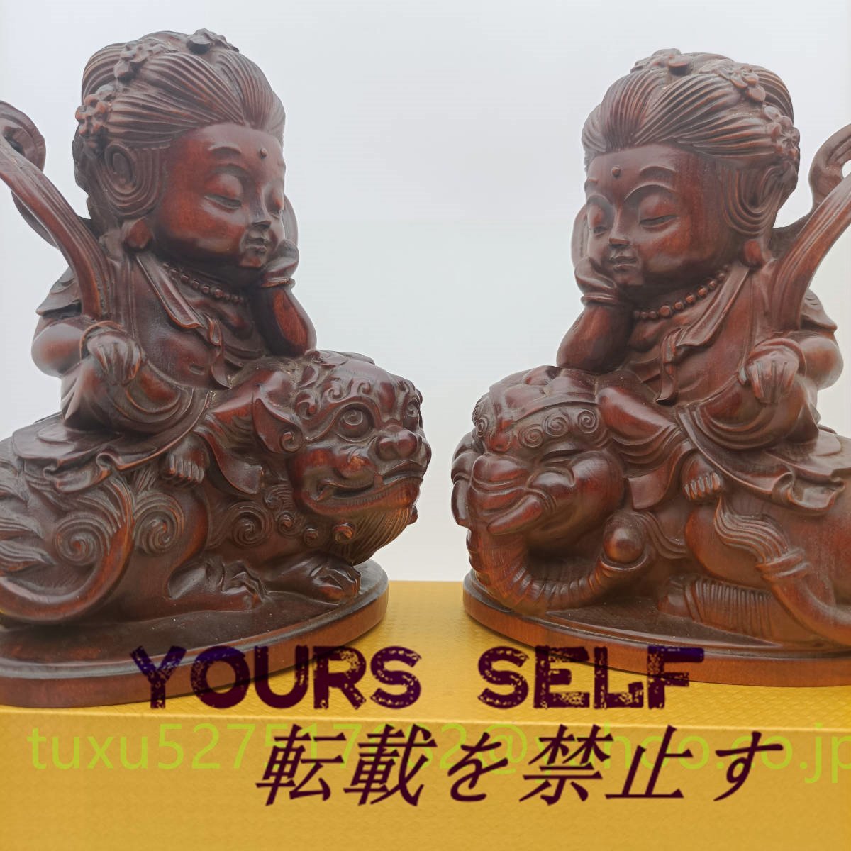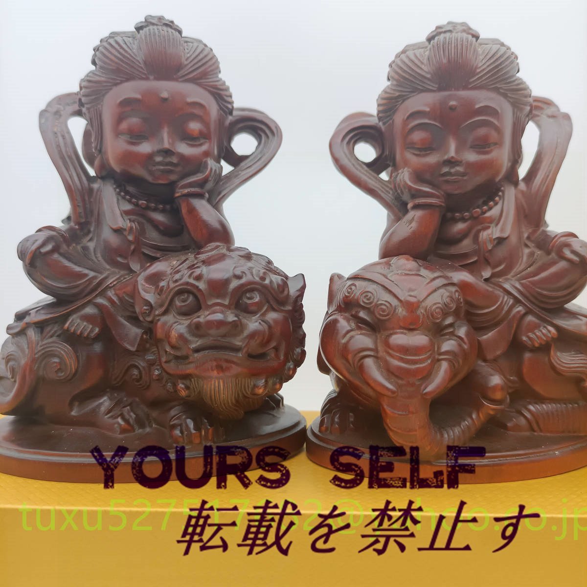 文殊菩薩 普賢菩薩 座像 一式 高さ約15㎝ 十二支守り本尊 木彫り 仏教美術 縁起物 贈り物