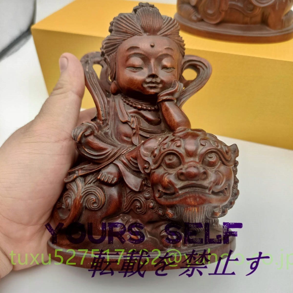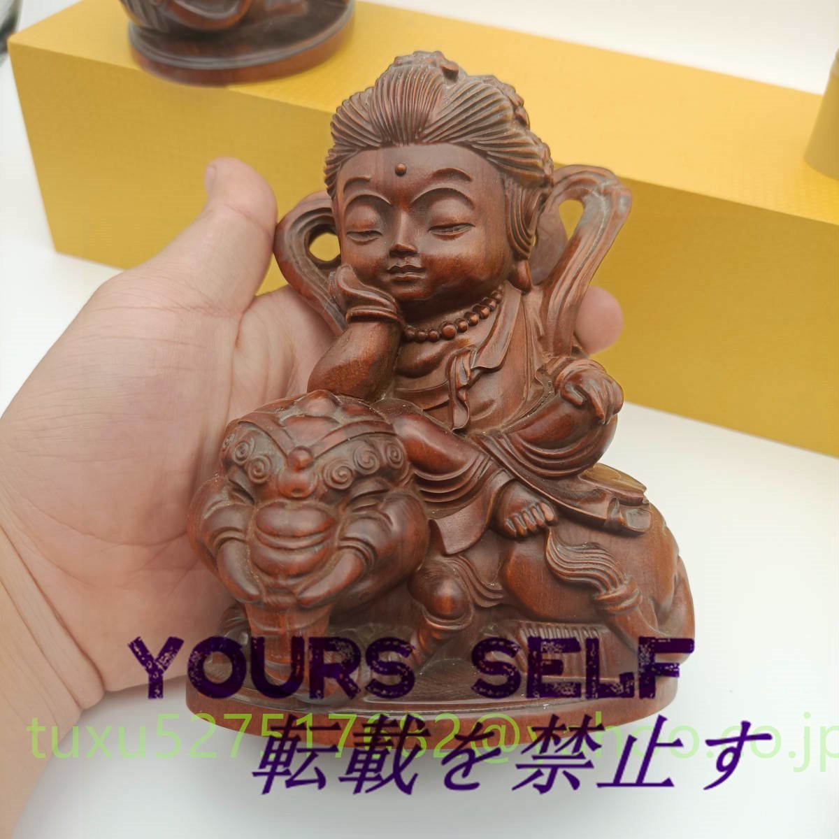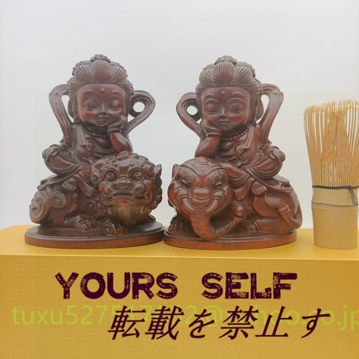 文殊菩薩 普賢菩薩 座像 一式 高さ約15㎝ 十二支守り本尊 木彫り 仏教美術 縁起物 贈り物