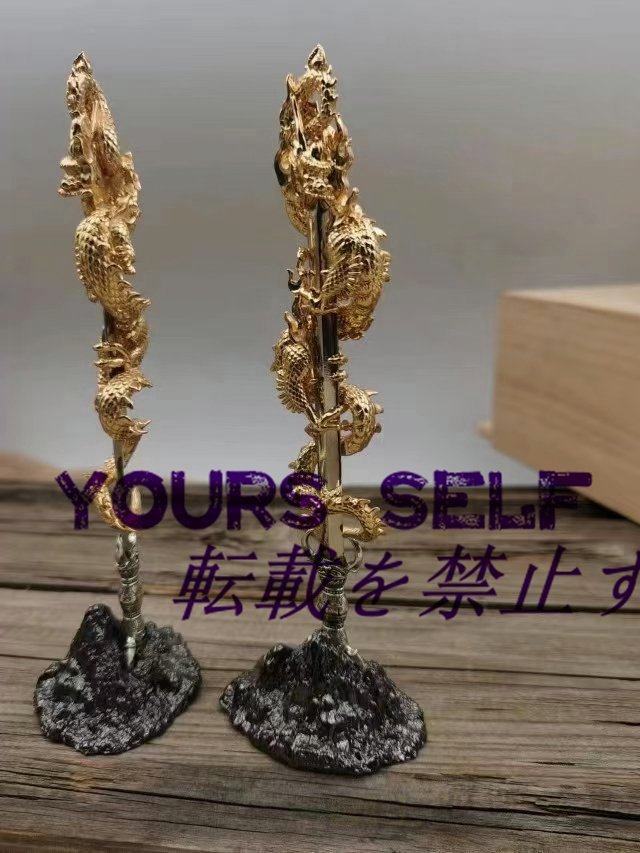 極上品★ 唐密 真言宗 倶利伽羅剣 密教法具 寺院用仏具 真鍮製磨き仕上げ 高さ15cm 密教法具 寺院用仏具