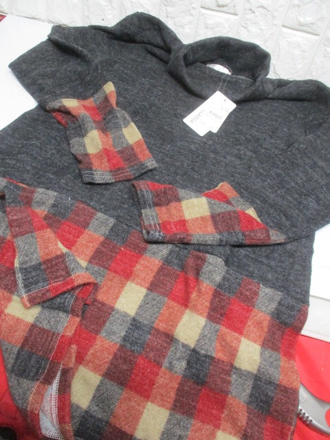 Y139/未使用 LL寸 ゆったりサイズ チェック ロング丈 プルオーバー トップス CLASSA