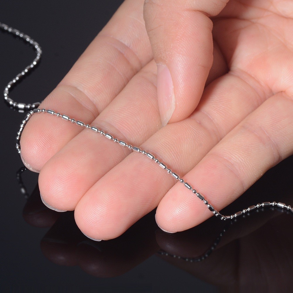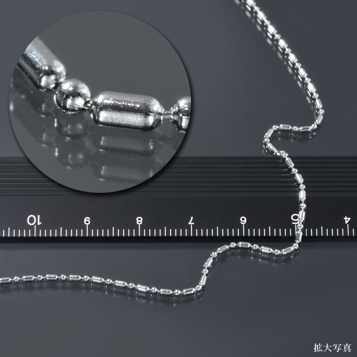 変形ボールチェーンは俵型のバーとボール(玉)が交互に連なり、通常のボールチェーンと比べるとアクセントのあるネックレスです。棒と球のパーツが連なるので(BAR×ROUND)、BRチェーンと商品名に付いております。 ※こちらのチェーンは絡まりにくく万が一絡まってしまったとしても解きやすいデザインです。 |