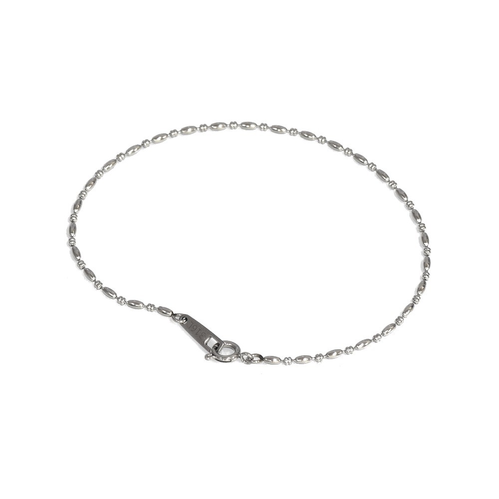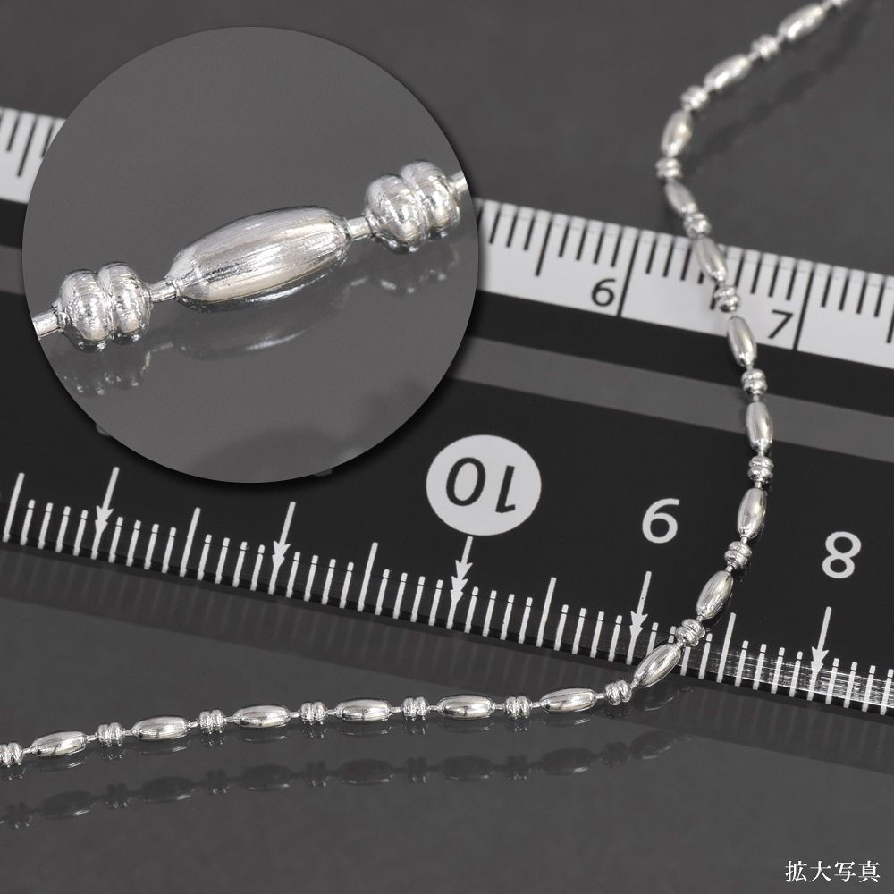 | そろばんライスチェーンは、ソロバン型のコマとライス型のコマが交互に連なったボールチェーンにも似たチェーン。少しエスニックな雰囲気が漂うブレスレットです。 ※こちらのチェーンは絡まりにくく万が一絡まってしまったとしても解きやすいデザインです。 |