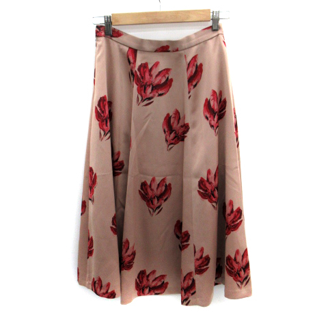イエナ IENA フレアスカート ロング丈 花柄 38 ベージュ 赤 レッド /SM7 レディース