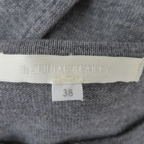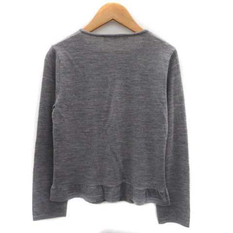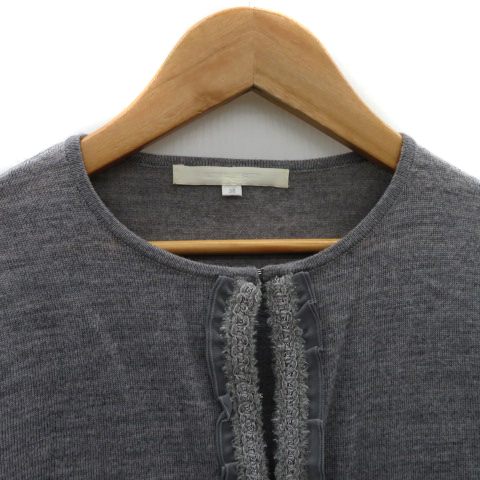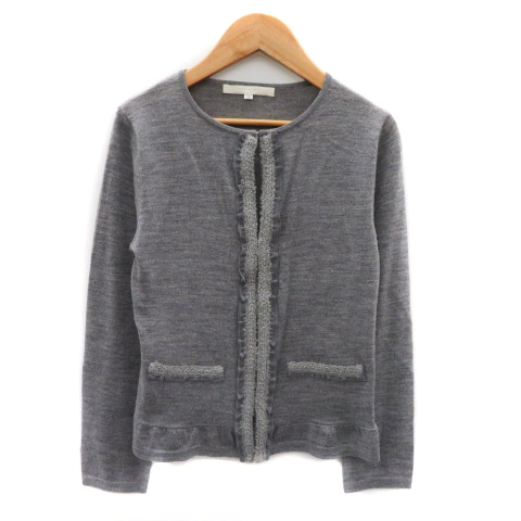 ナチュラルビューティー NATURAL BEAUTY カーディガン ミドル丈 ラウンドネック フリル 無地 ウール 38 グレー /YK36 レディース