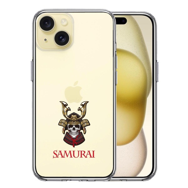 iPhone15Plus ケース クリア サムライ スカル武者 スマホケース 側面ソフト 背面ハード ハイブリッド