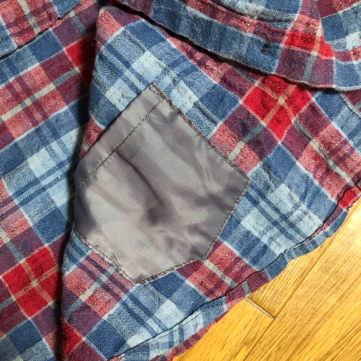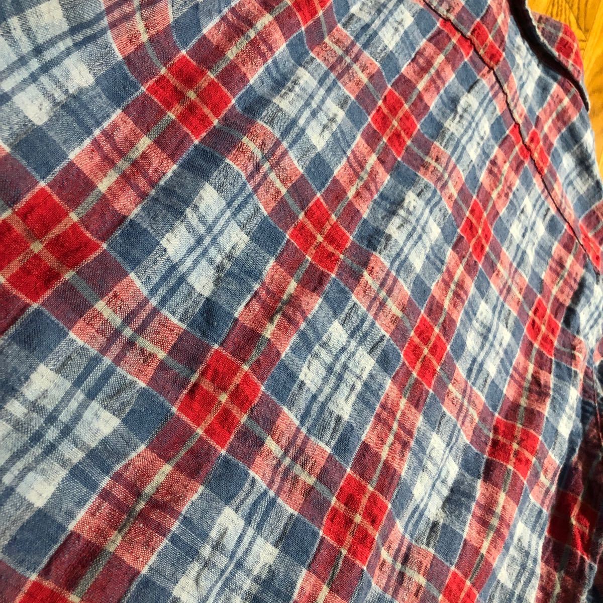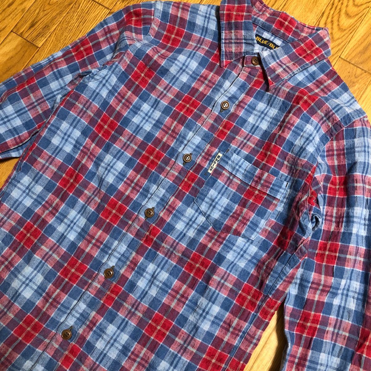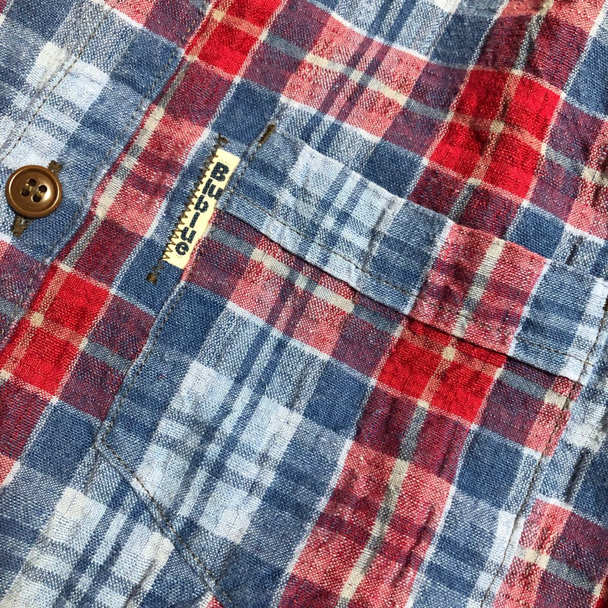BLUE BLUEの春夏向けのチェックシャツになります。生地には凹凸があり、シアサッカー調です。
