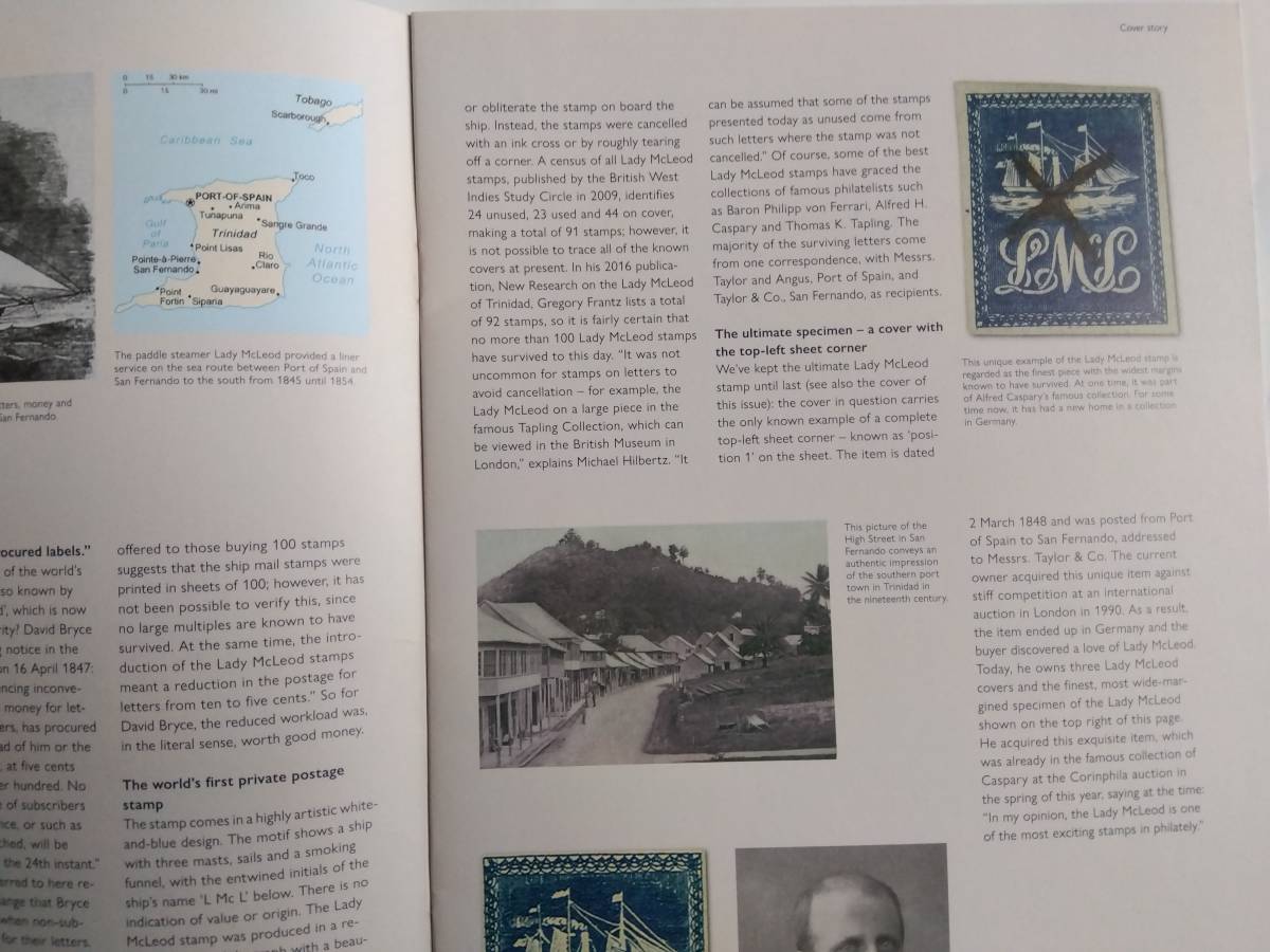 世界初の私製切手として有名なレディマクレオド切手の記事や最初の消印として有名なビショップマークの記事を掲載した記事、初期の大西洋横断郵便に関する記事等が掲載。