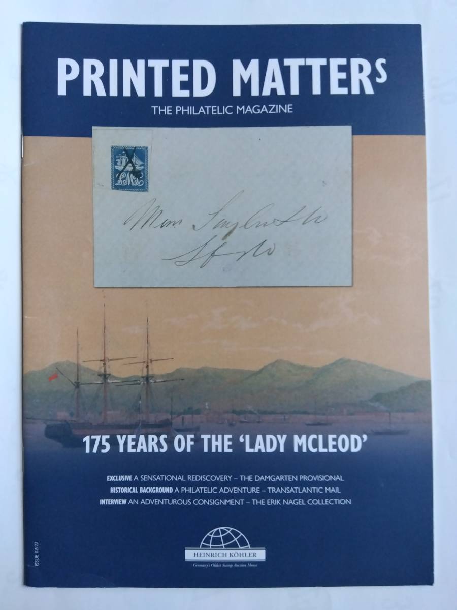 ドイツの名門オークション会社ハインリッヒ・ケラー発行の郵趣誌「プリンテッド・マター」の2022年第2号。