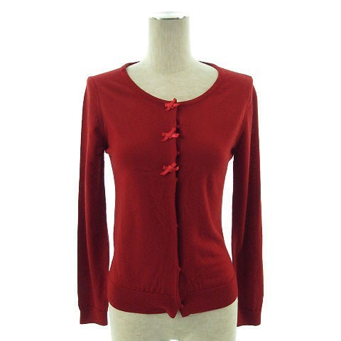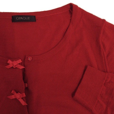 オペーク OPAQUE カーディガン ラウンドネック 長袖 前開き リボン ウール レッド 赤 1 レディース
