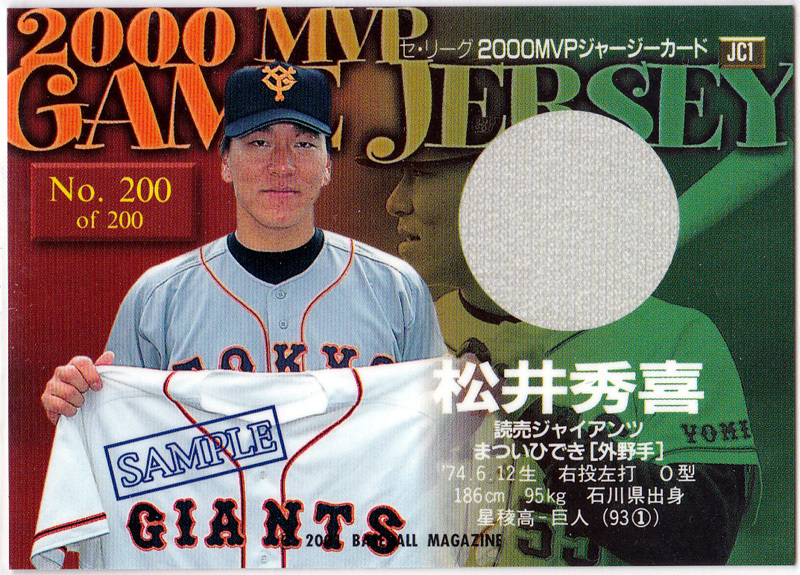 【2種セット】BBM 2001年 No.JC1 ノンジャージーカード 松井秀喜(巨人/読売ジャイアンツ)=バインダー封入特典カード+SCM付録 SAMPLE版