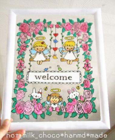 ★NO.A02★ステンドグラス風・A4サイズ・天使・バラ・幸せ・リース・バラ園・アレンジ・看板・ハンドメイド・雑貨・インテリア・イラスト