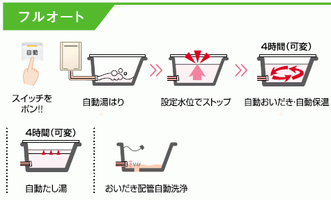 お湯はりから、おいだき、保温、たし湯まで全自動で出来るフルオートタイプ。