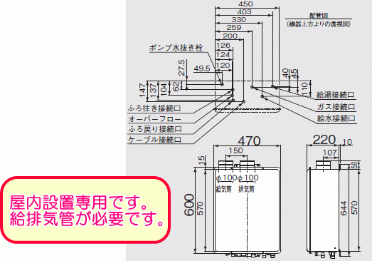 屋内設置専用タイプです。給排気管が必要です。
