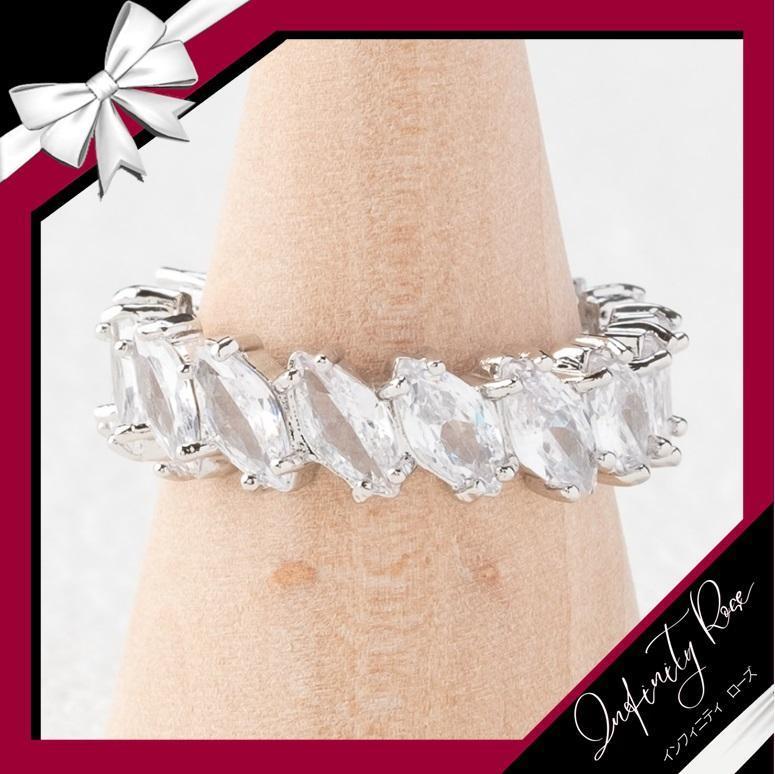 #シルバー斜めオーバル高価爪留めクリスタルリング