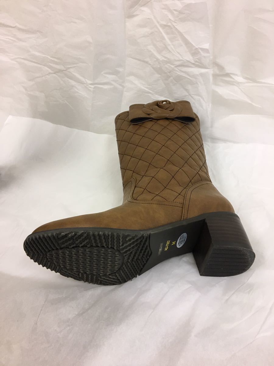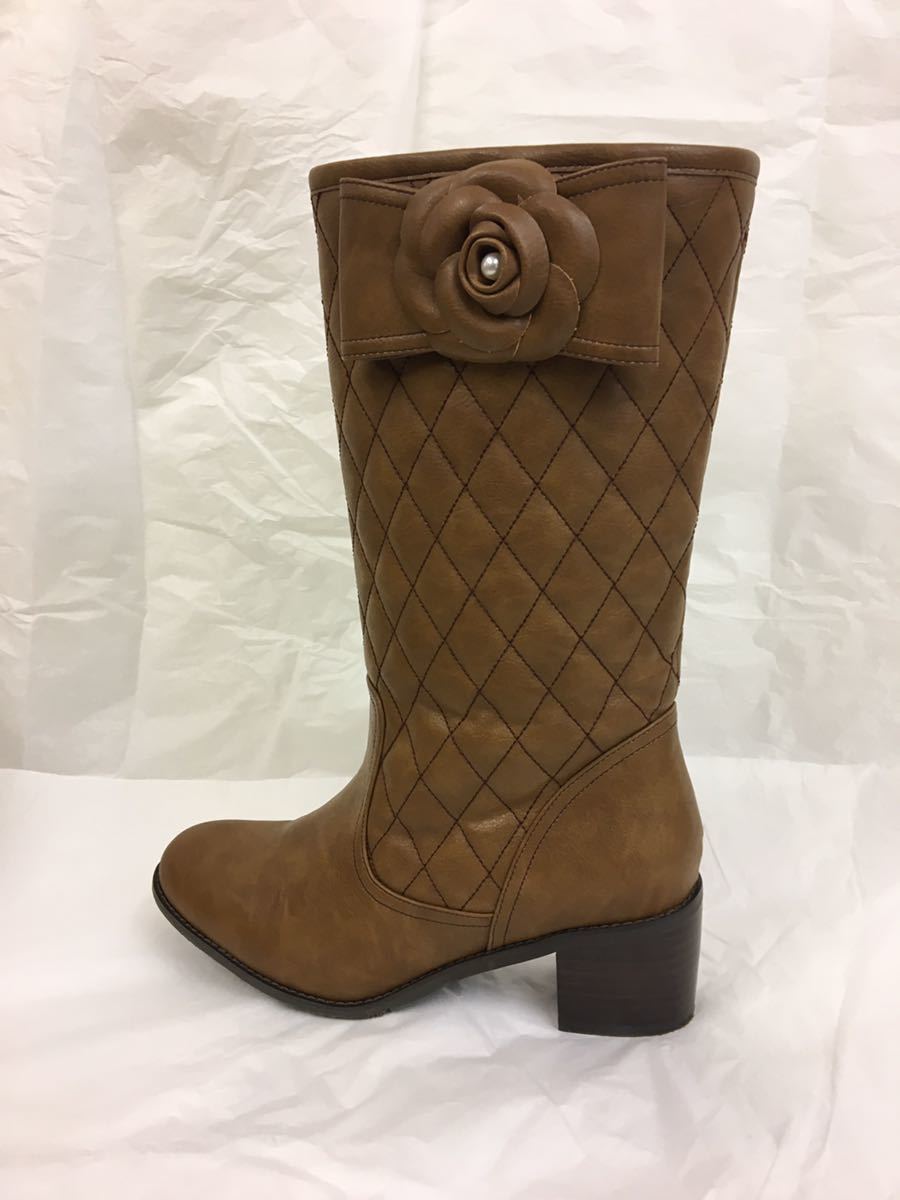 高級感のある、キルティングデザインのミドルブーツ。 ややムラ感のある素材を使い、ヴィンテージ風に仕上げてます。 カメリアリボンをポイントあしらうことで、大人の可愛いらしさを演出しています。 すっきりとした美脚ラインにこだわり、ヒール部分には太めのスタックヒールを採用。 しっかりとした安定感があり、履き心地も魅力です。 さらに、内側にはファスナーが付けて着脱もしやすく。 コーディネートのポイントになる、おしゃれなアイテムです。 | |||