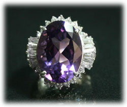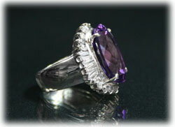 アメシストを豪華な取り巻き枠にセットしたリングは
