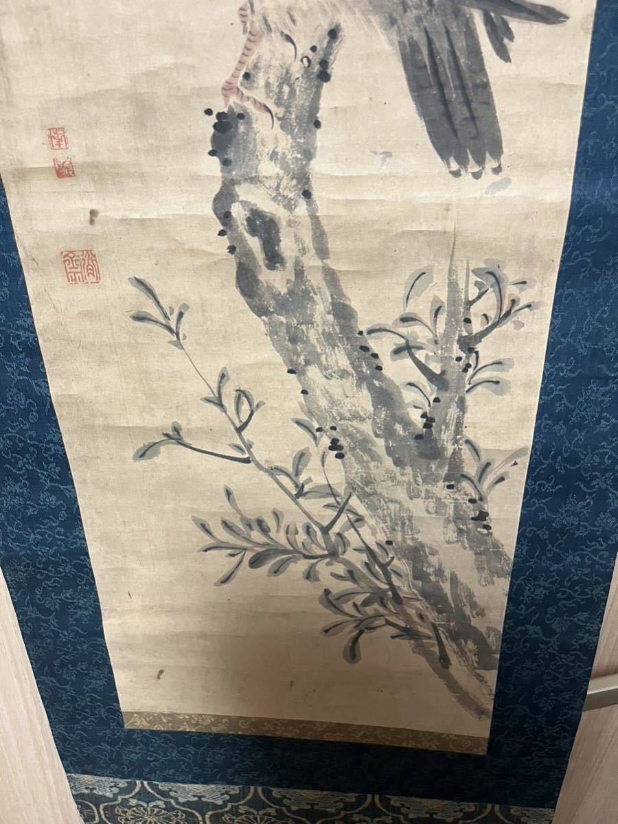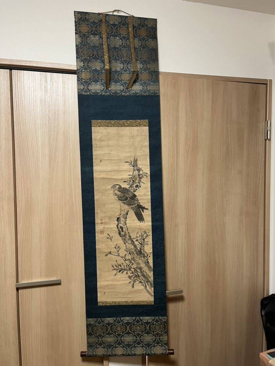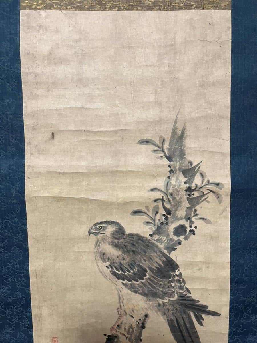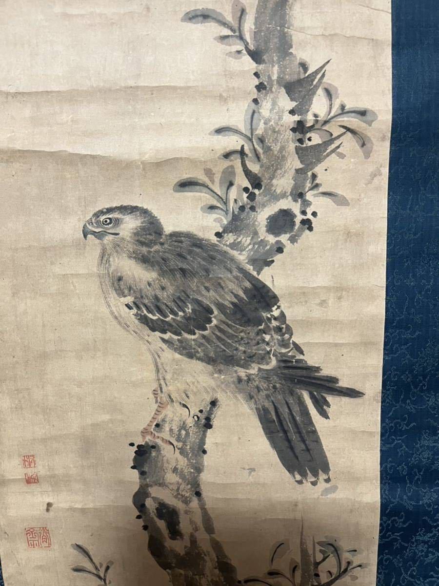 164×45.5 沈南蘋 中国 清 時代 画家 掛軸 鷹の図 直筆 落款 江戸中期 弟子 円山応挙 伊藤若冲