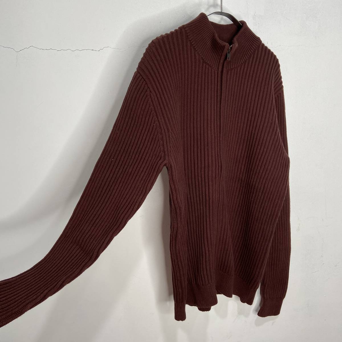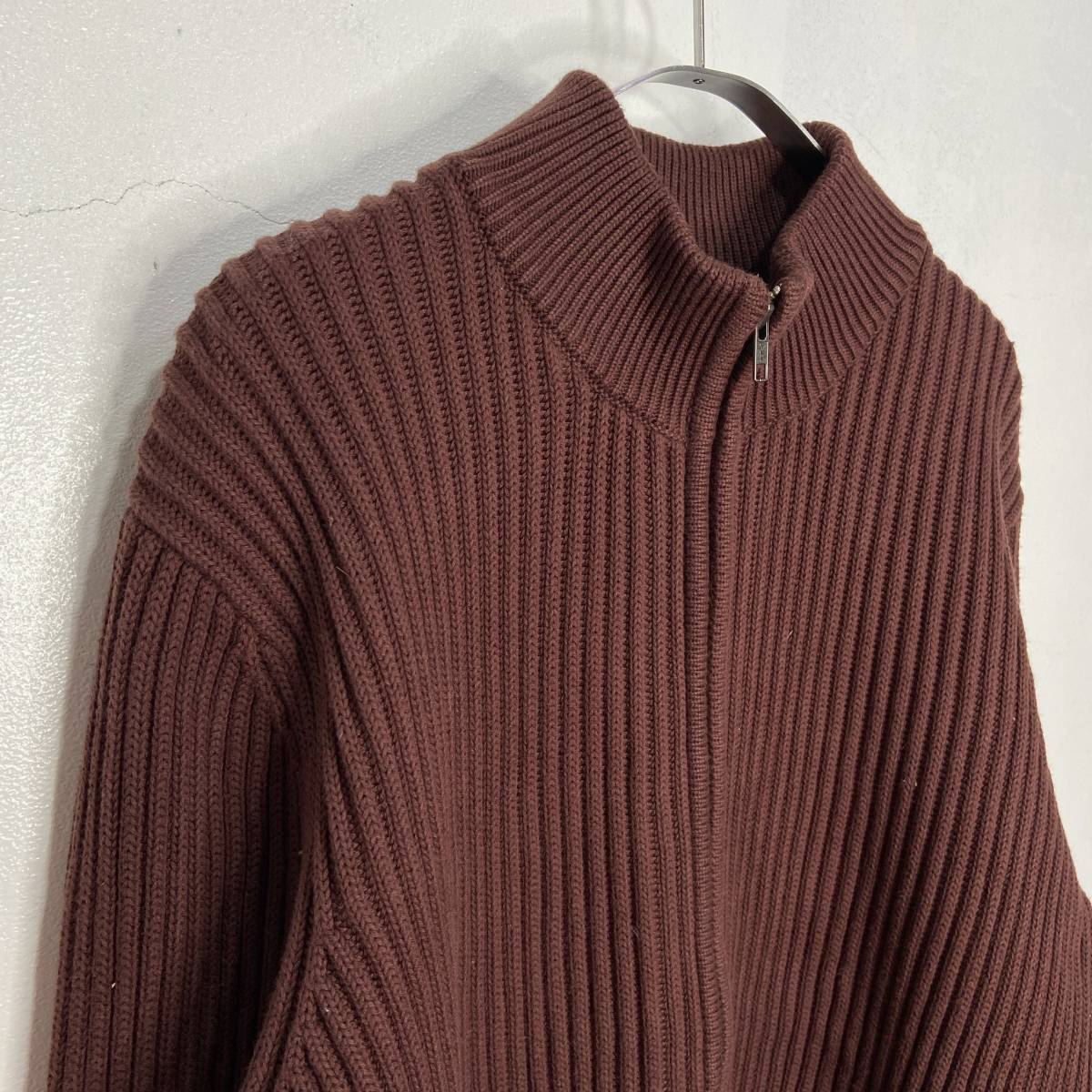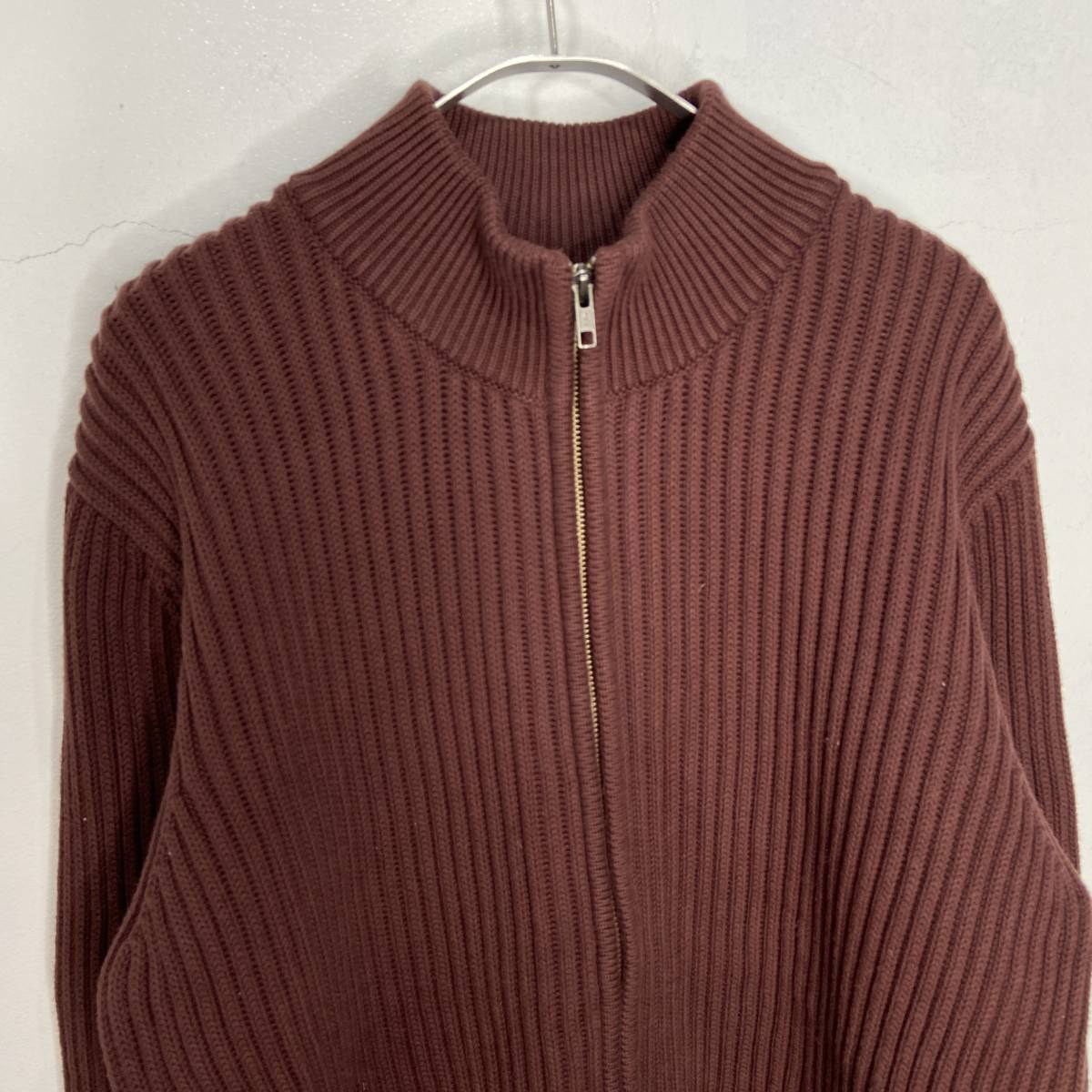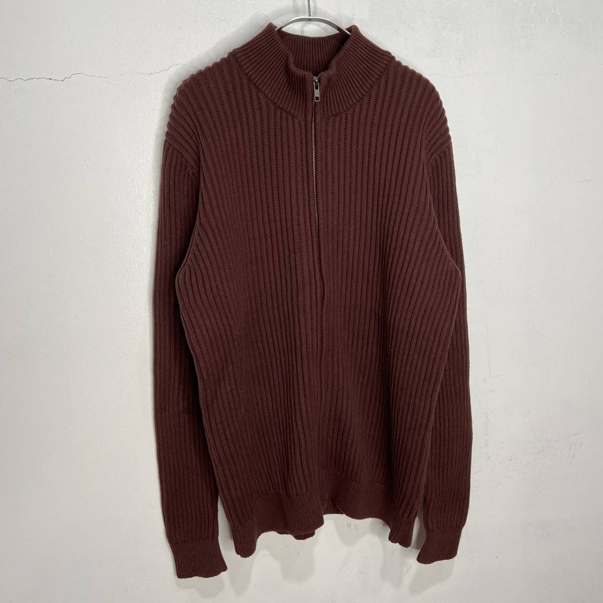 送料無料☆L.L.Bean☆エルエルビーン☆ドライバーズニット☆ジップカーディガン☆リブ編み☆ブラウン☆L☆A24M