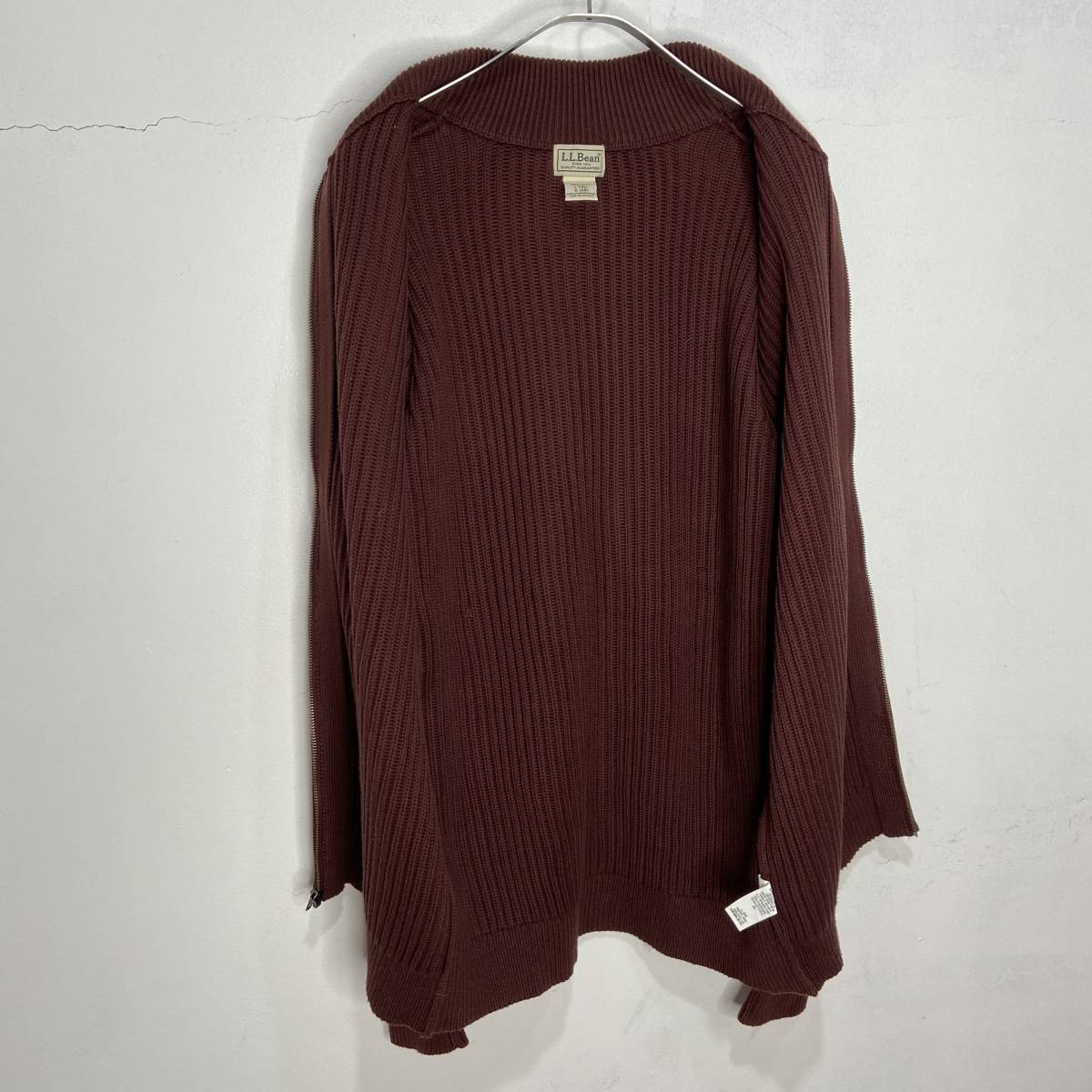 ☆L.L.Bean☆エルエルビーン☆ドライバーズニット☆ジップカーディガン☆リブ編み☆ブラウン☆L☆