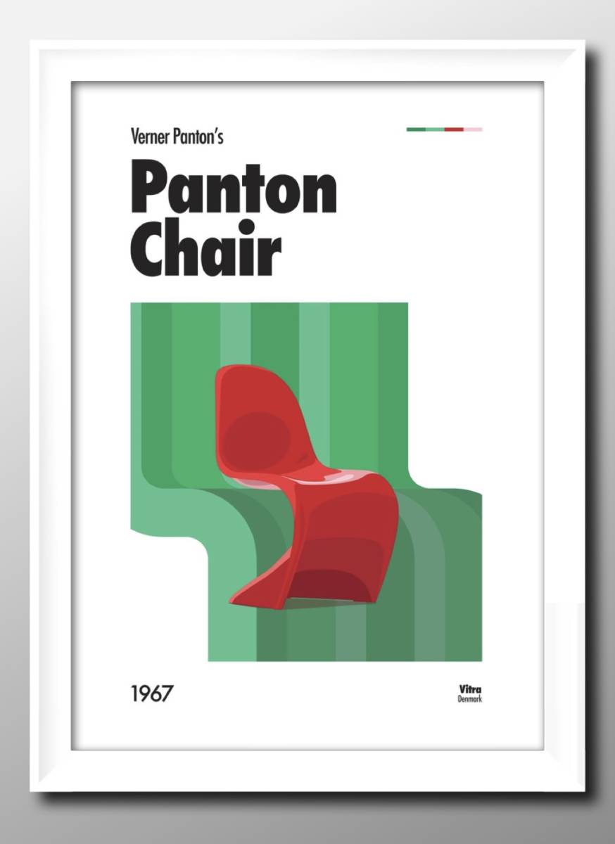 12921■送料無料!!アートポスター 絵画 A3サイズ 『パントンチェア ミッドセンチュリー』イラスト デザイン 北欧 マット紙