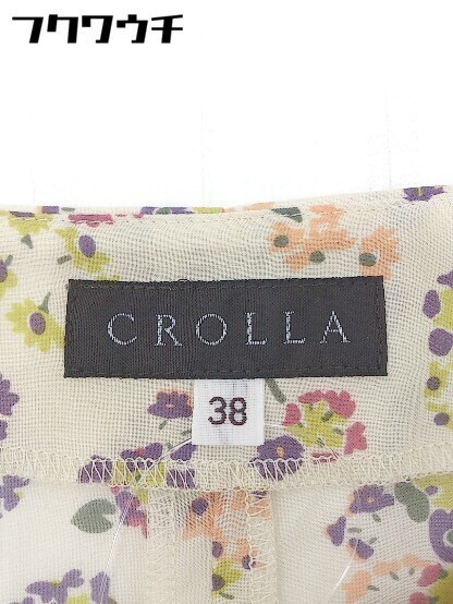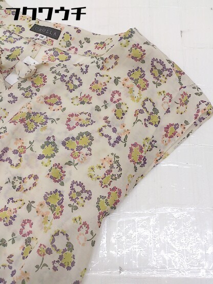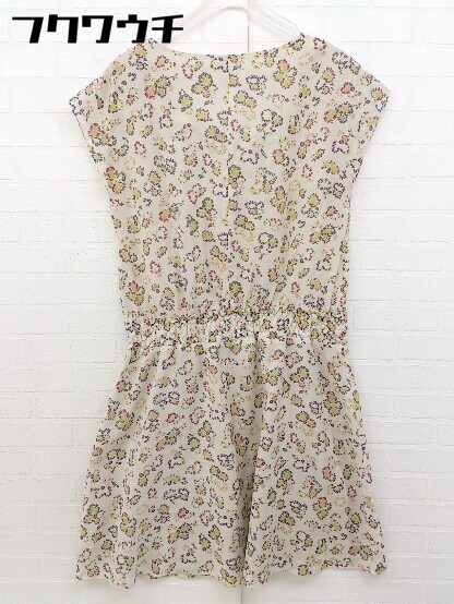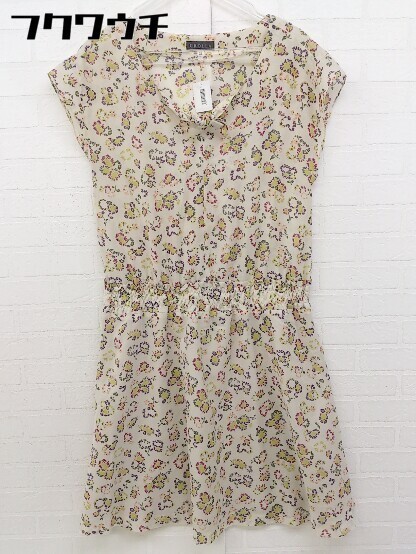◇ CROLLA クローラ 花柄 フラワー フレンチスリーブ 膝丈 ワンピース サイズ38 ベージュ マルチ レディース