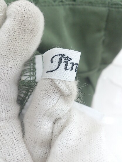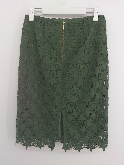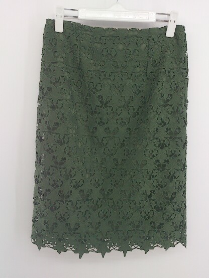 ◇ Jines ジネス レース 星柄 バックジップ スリット 膝下丈 タイト スカート サイズ38 モスグリーン レディース P