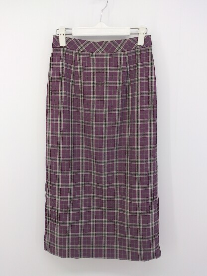 ◇ NATURAL BEAUTY BASIC チェック 膝下丈 ナロー スカート サイズM パープル系 マルチ レディース P