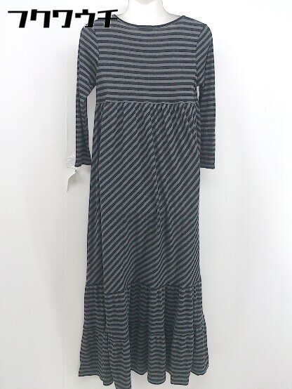 ◇ apart by lowrys アパートバイ ローリーズ ボーダー 八分袖 ロング ワンピース サイズF グレー ブラック レディース